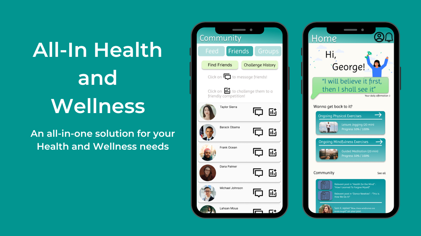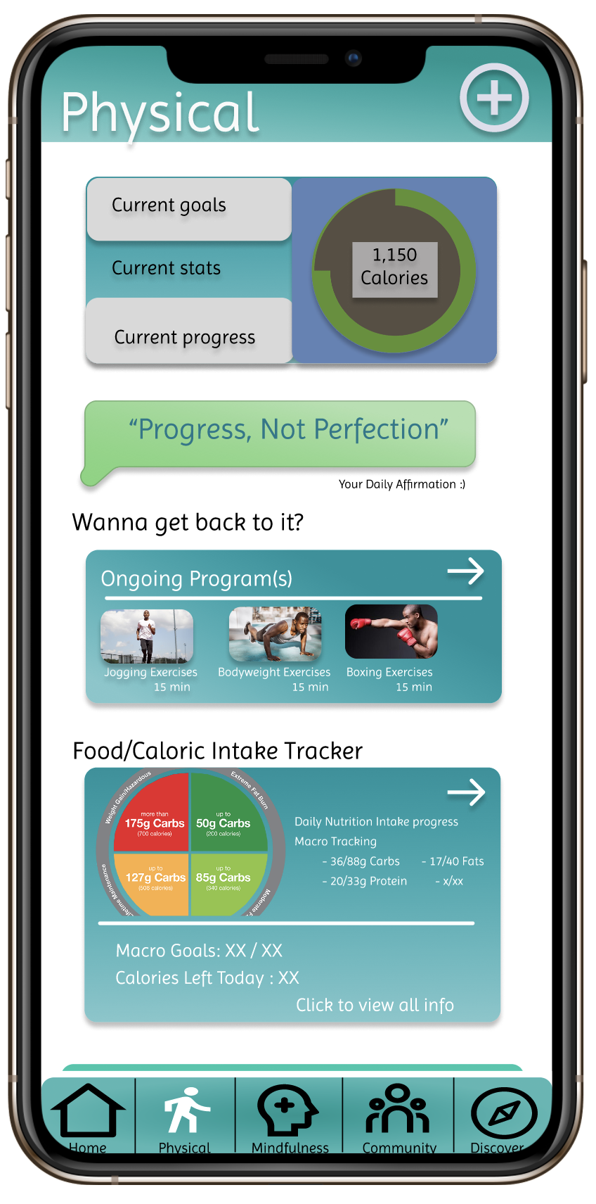 I wanted to research and design the concept for a new Health & Wellness app that would assist users in managing, improving, and monitoring their overall health— both physically and mentally. I also wanted to incorporate a social aspect into the app to encourage accountability and motivation.
