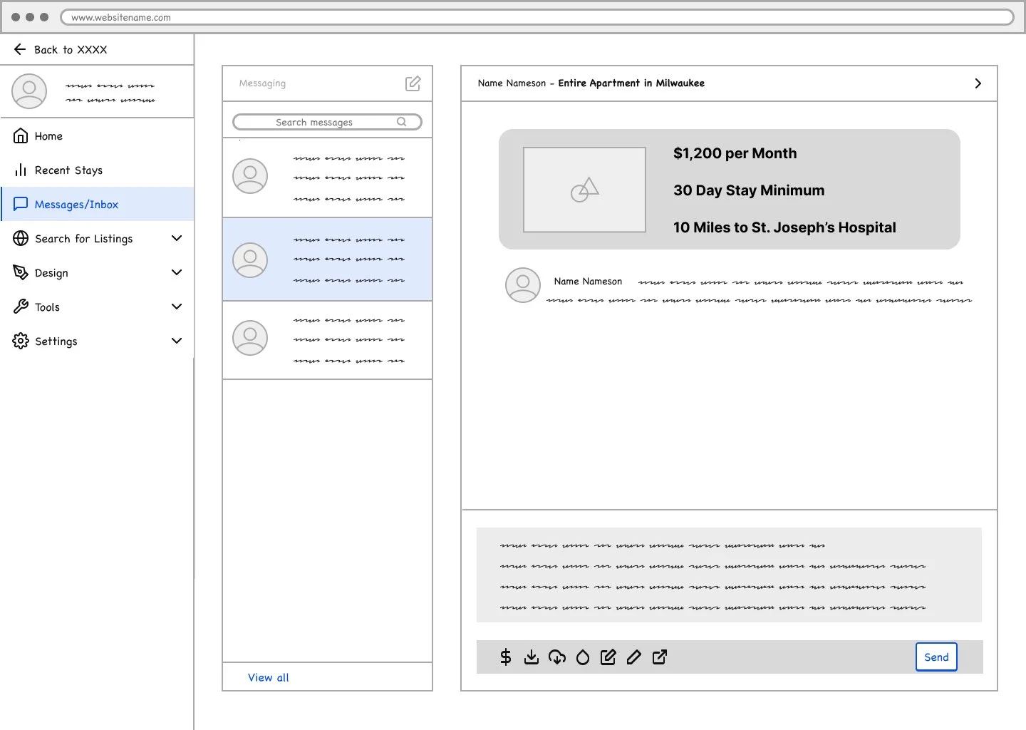Combining both teams, Design and Research, we conducted Usability Testing with their primary audiences– Travel Nurses and Property Owners, on the use of our high-fidelity prototype. In this phase, we wanted to identify user pain points and further push for clarity and simplification— these findings absolutely came in handy for revising and editing our prototype!