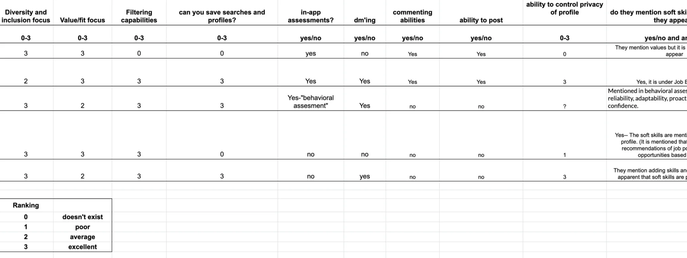 To kick off the project, our design team conducted competitive analyses of the client website with four other existing tools with similar functionalities. We wanted to answer the following questions—